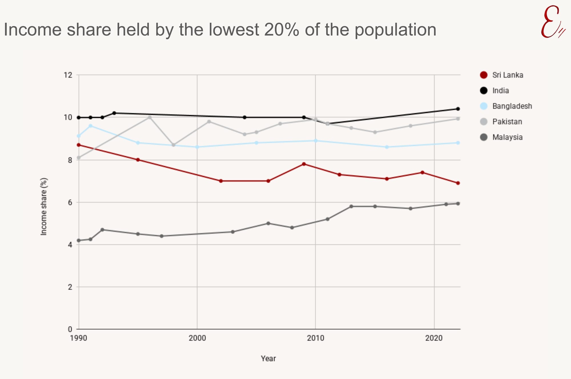 Words by The Examiner Sri Lanka's poorest are getting less of the pie 27 March 2026 Over the last three decades, Sri Lanka's poorest have been getting less of the pie. While, in other countries, they're getting more of it.