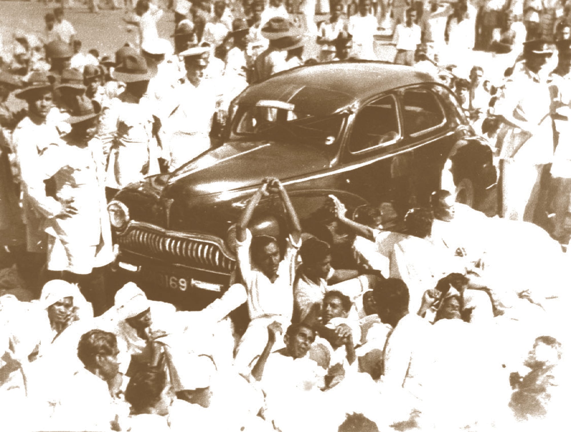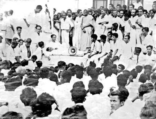 F. R. Jayasuriya's fast in favour of Sinhala Only and Tamil protesters against Sinhala Only attacked, 1956. Photo: Thuppahi's blog and Tamil Guardian